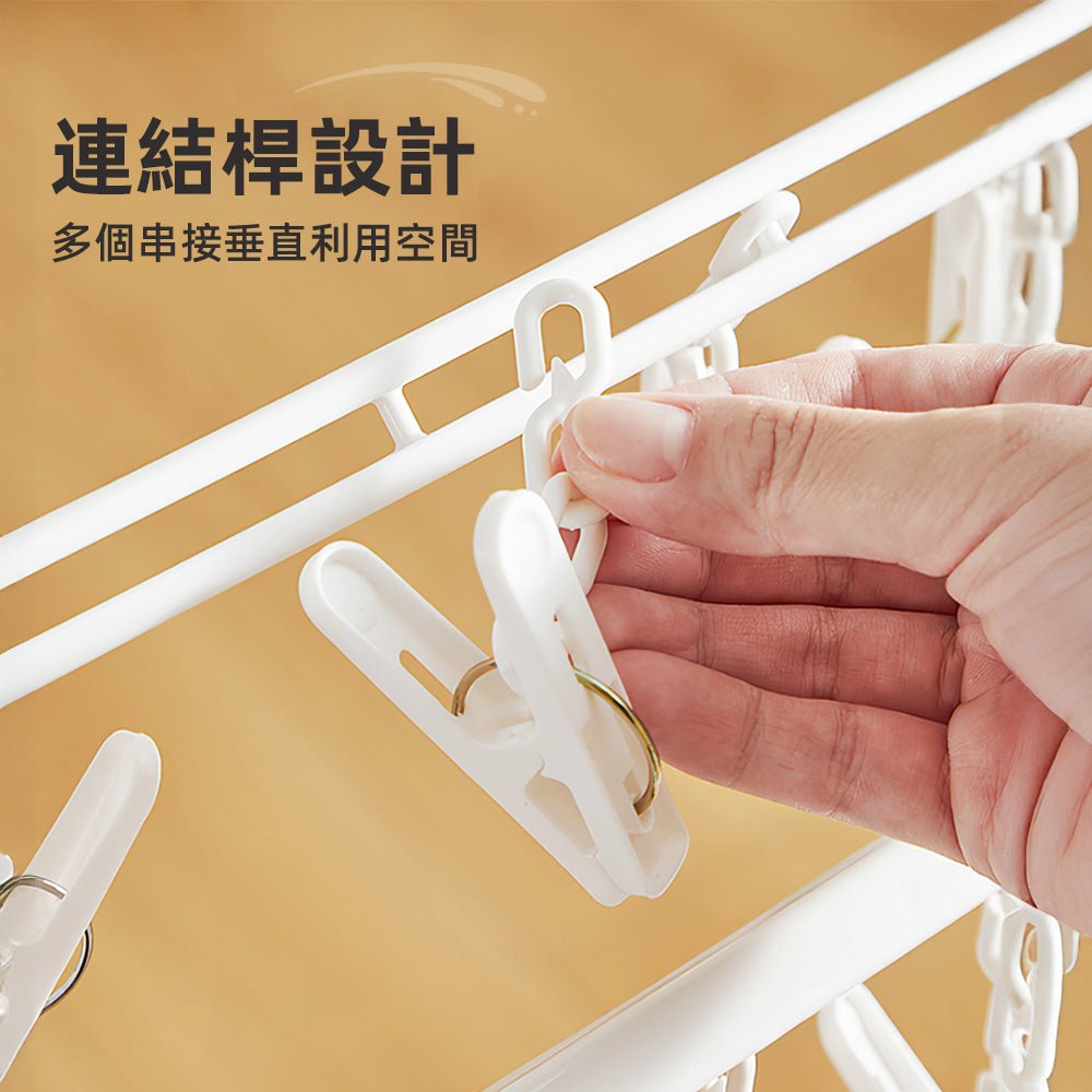 可疊加曬襪架|24夾強力防風・垂直串接省空間・摺疊收納不佔位